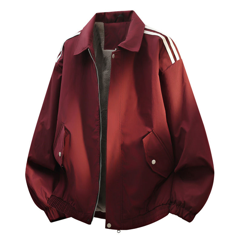 WASSUP PLAM外套男款2025新款春秋季美式潮牌百搭加绒条纹夹克潮