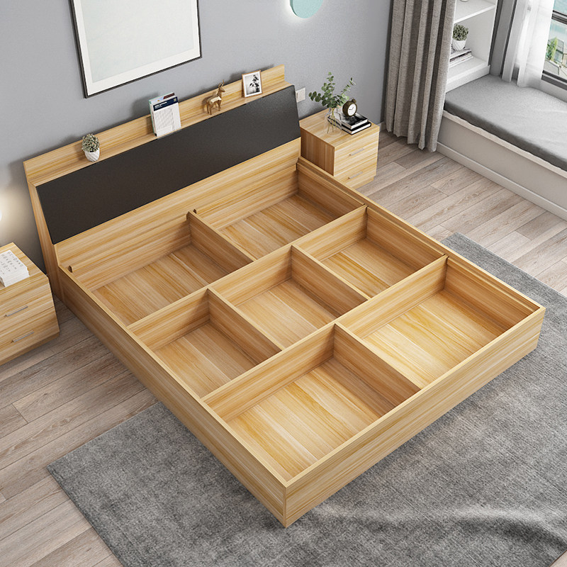 板式床现代简约双人床1.8米榻榻米床1.5米1.2米出租房高箱储物床