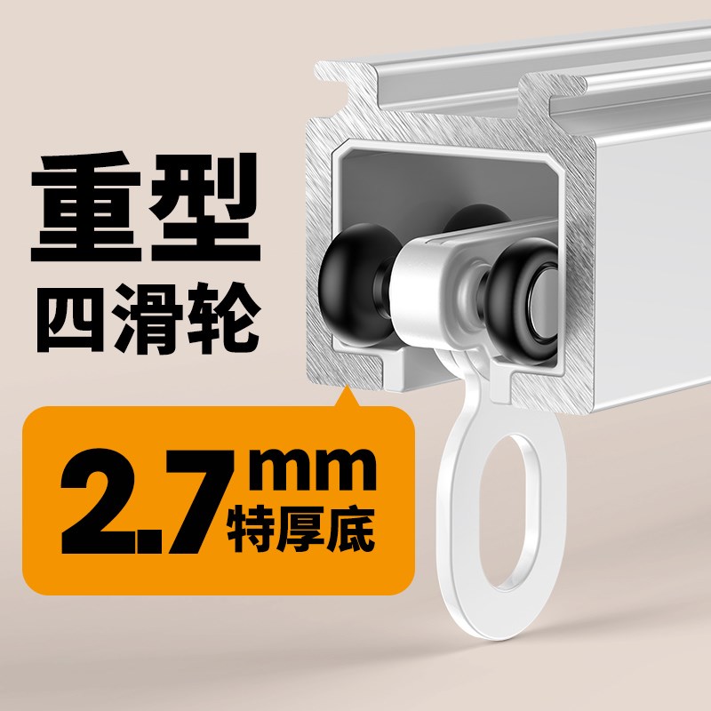 特厚静音滑轮铝合金顶装侧装窗帘轨道单轨双轨挂钩式滑道滑轨