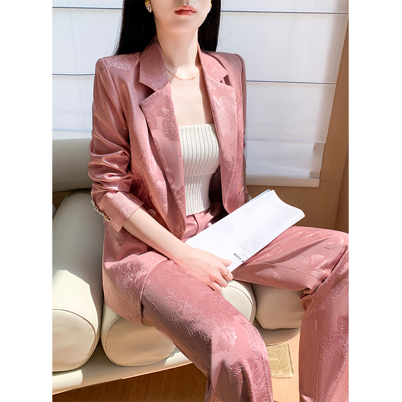 2025新款春秋款高端粉色西装套装女职业正装气质时尚休闲西服外套