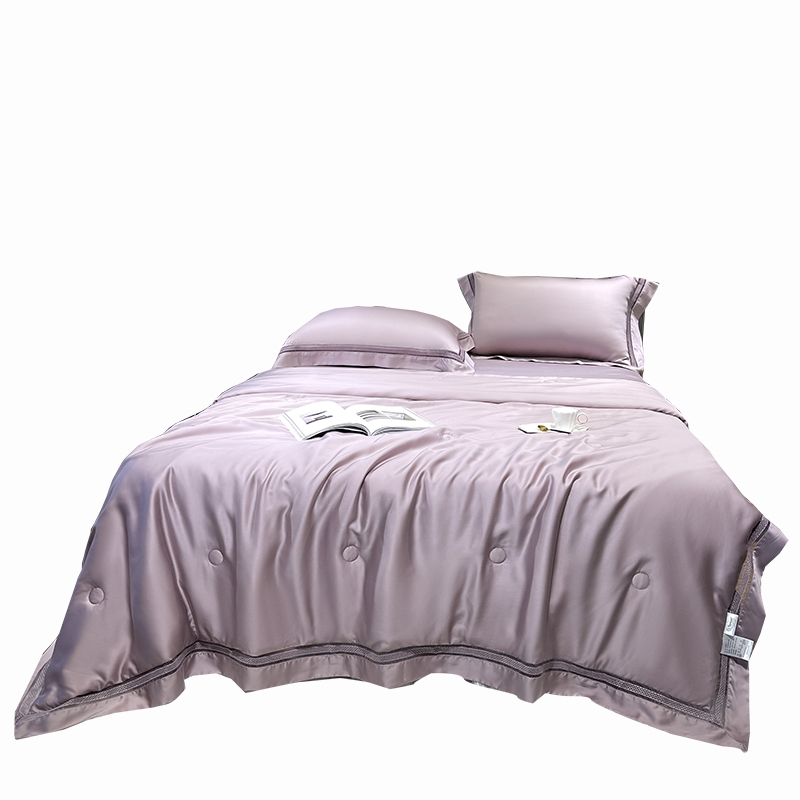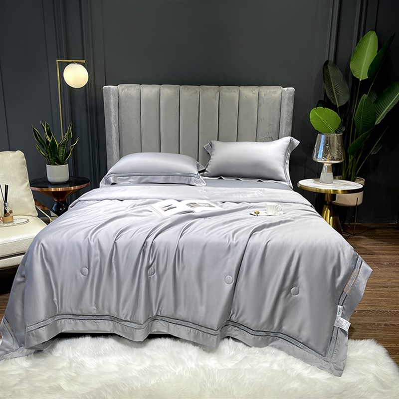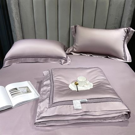 双面天丝夏凉被四件套床笠可水洗冰丝空调被子双人纯色莱赛尔夏被