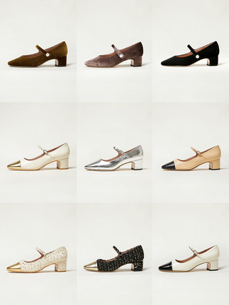割草机老k 银色小香风新中式浅口单鞋女 圆头粗跟玛丽珍鞋子ins