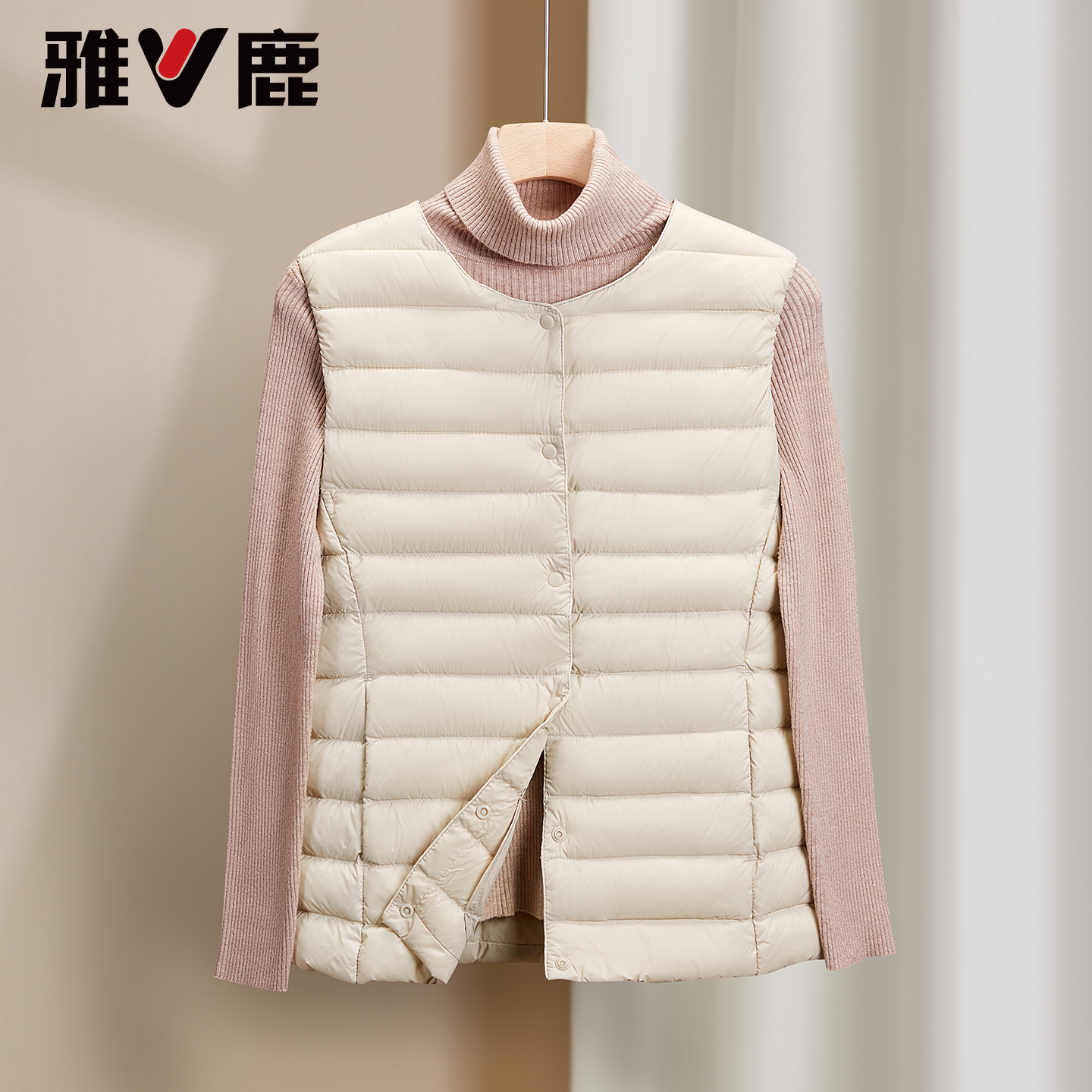雅鹿轻薄羽绒服马甲女2025新款基础修身背心内胆保暖鸭绒马夹外套