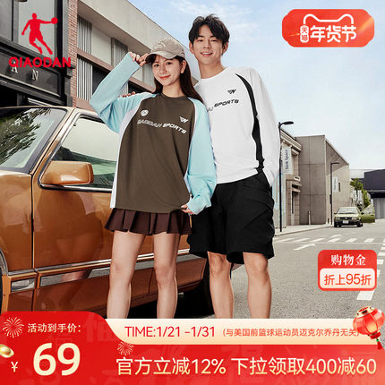 乔丹吸湿速干长袖T恤男士2026春季新款撞色拼接情侣宽松透气篮球T