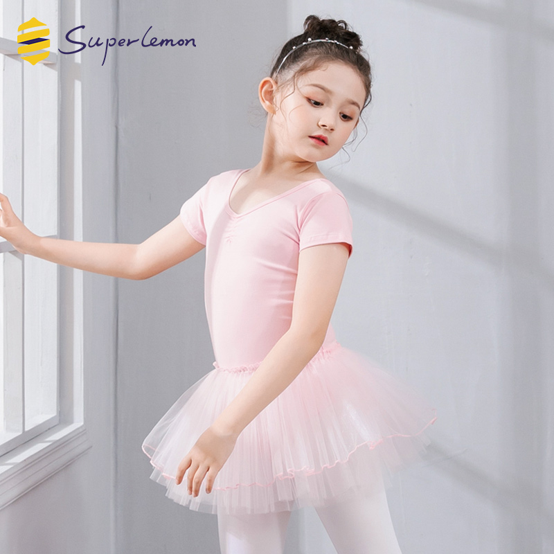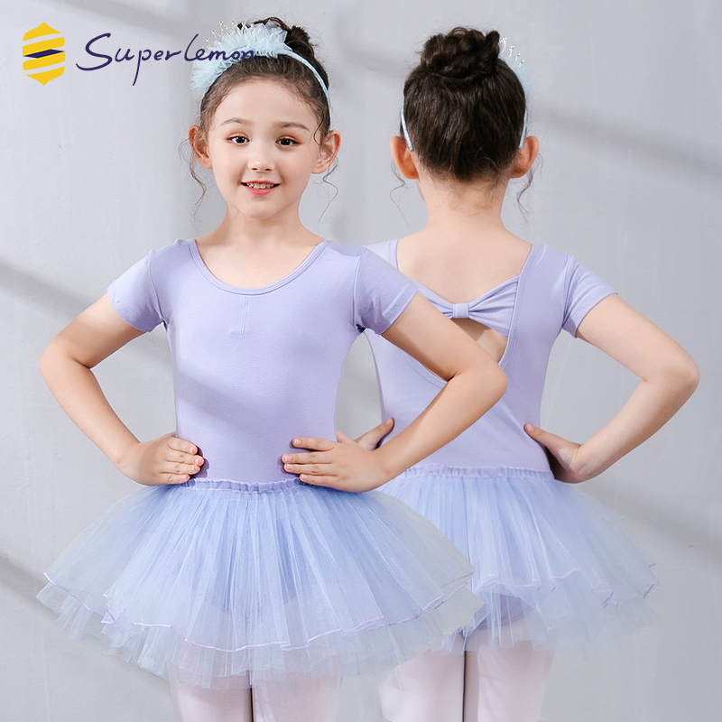 儿童舞蹈服女夏季短袖连体纱裙中国舞服形体服女童芭蕾舞裙练功服