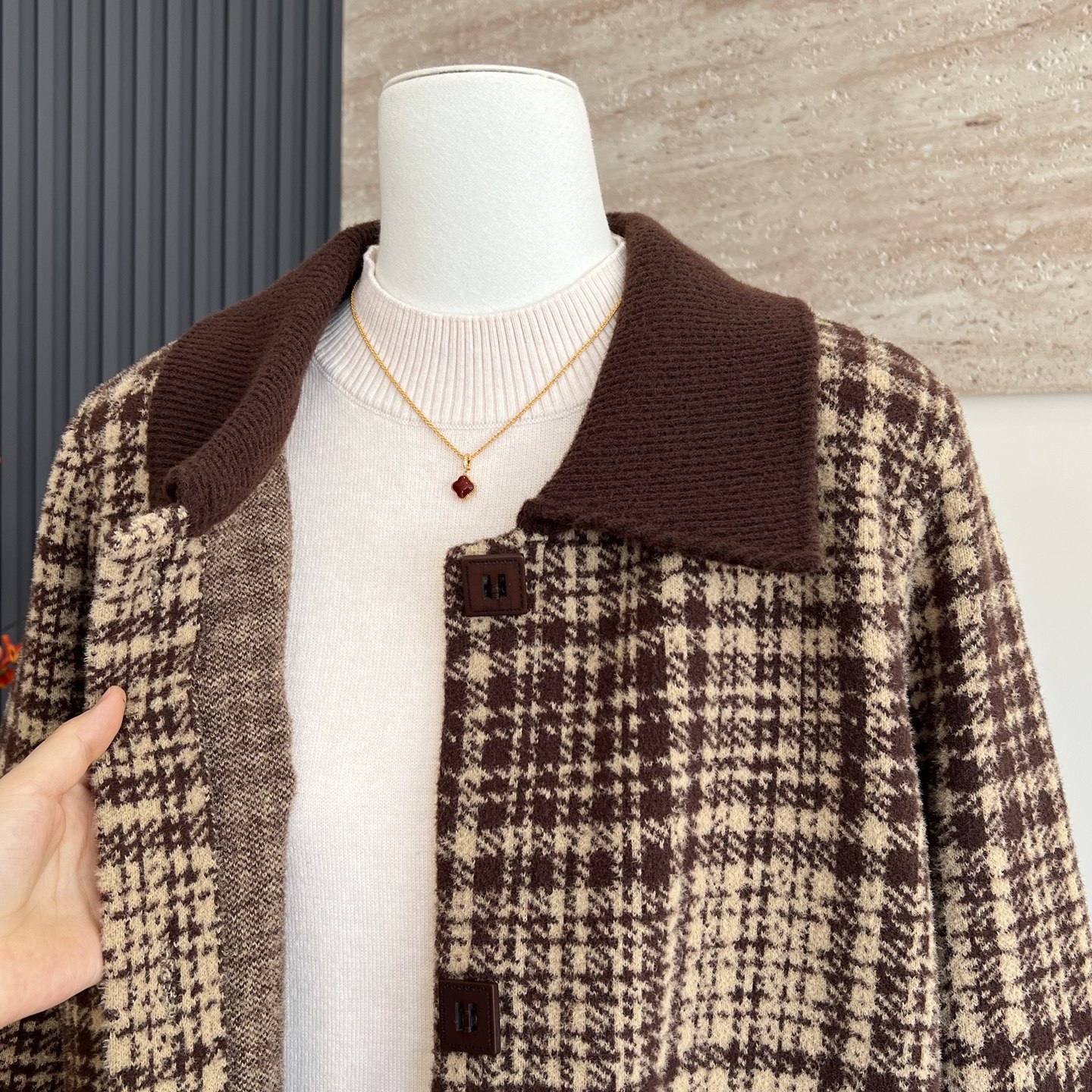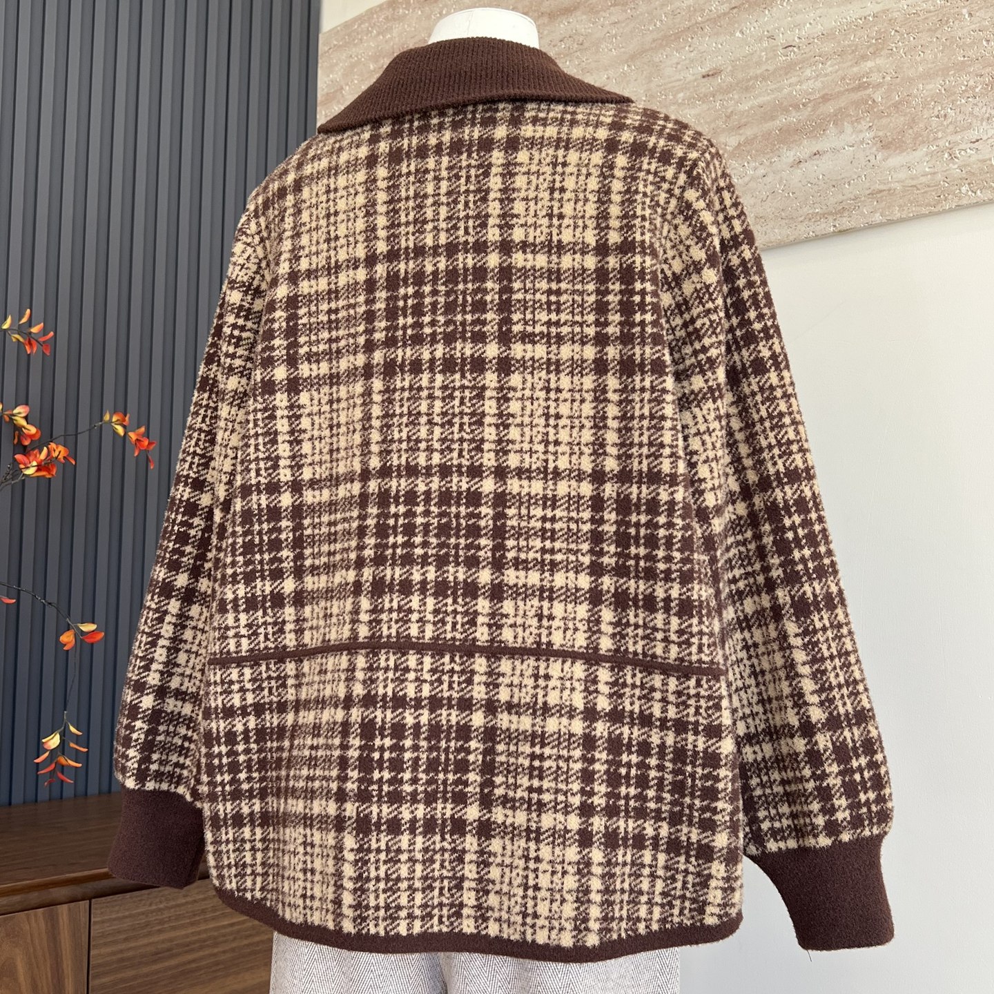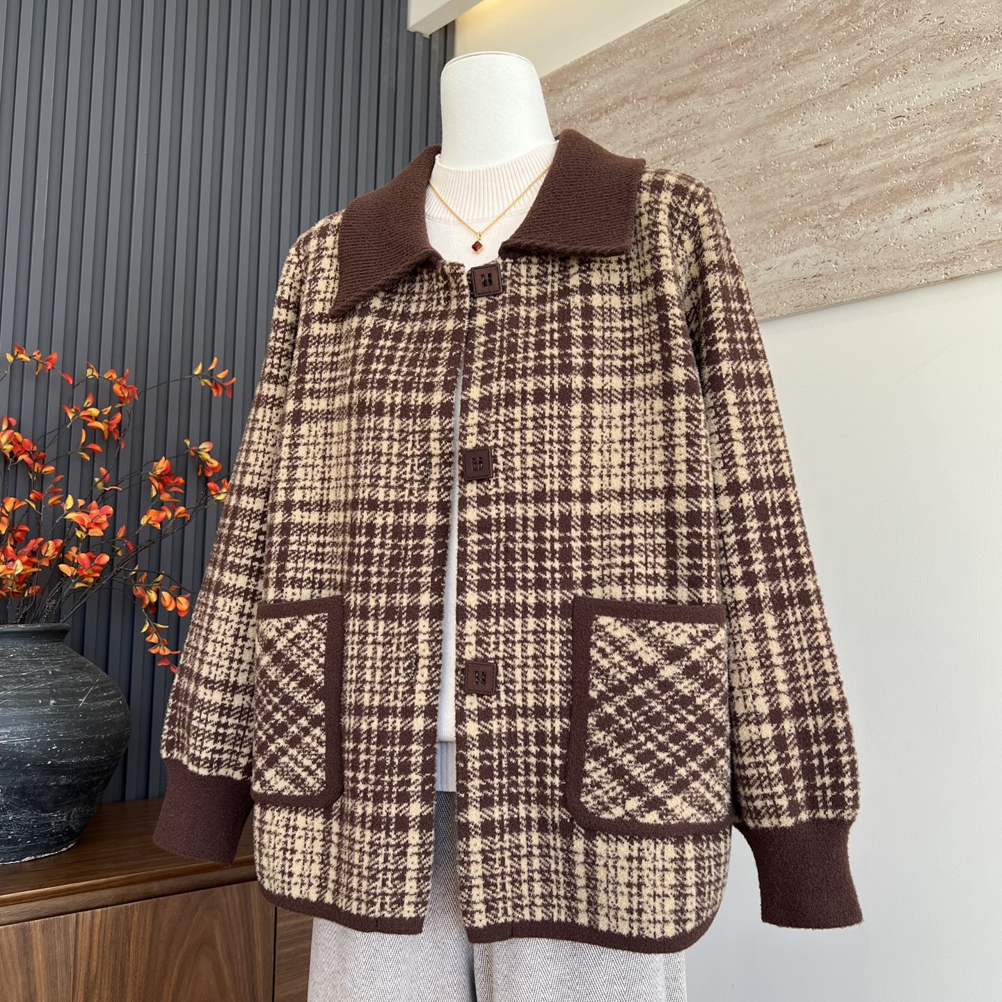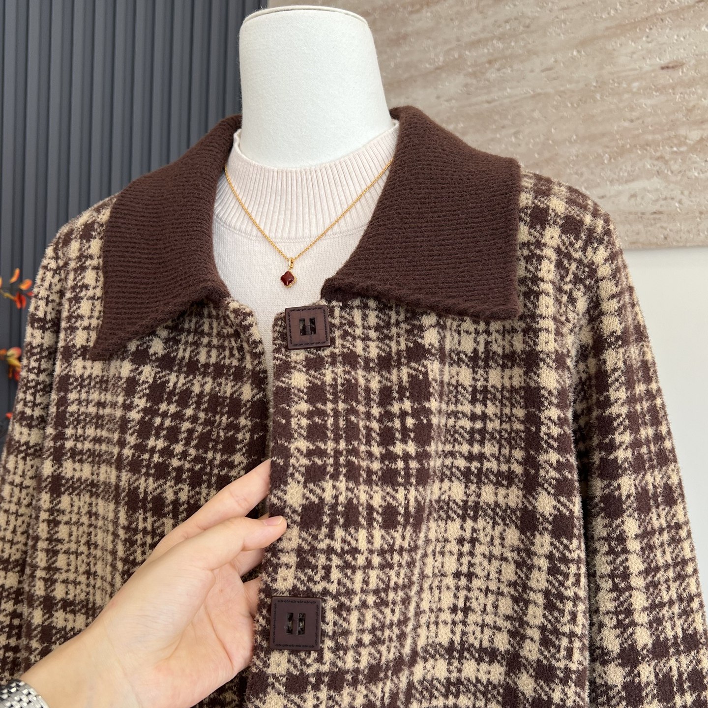 新款妈妈秋冬仿毛呢针织纽扣开衫