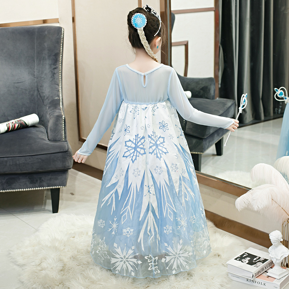 春秋季童装 儿童冰雪奇缘长袖连衣裙 女童万圣节艾莎公主蓝粉色