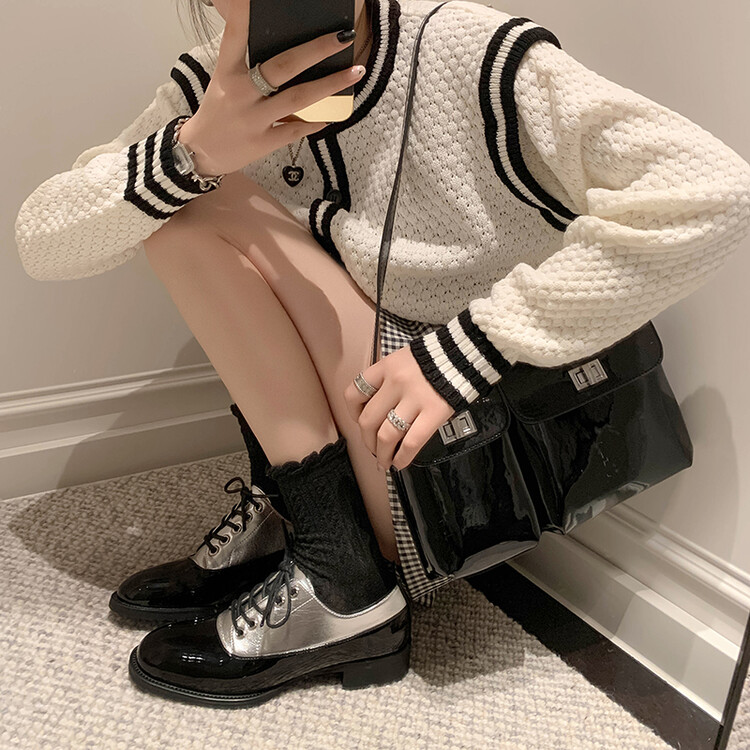 银色单鞋女设计感小众2023年新款平底鞋高个子百搭英伦小皮鞋
