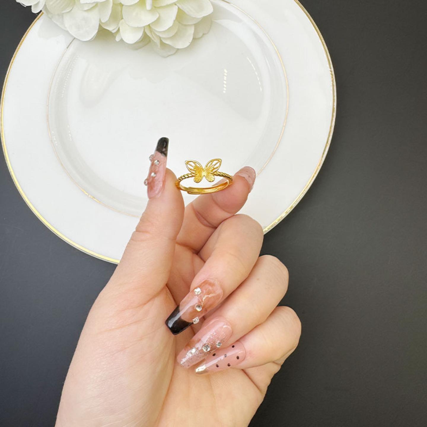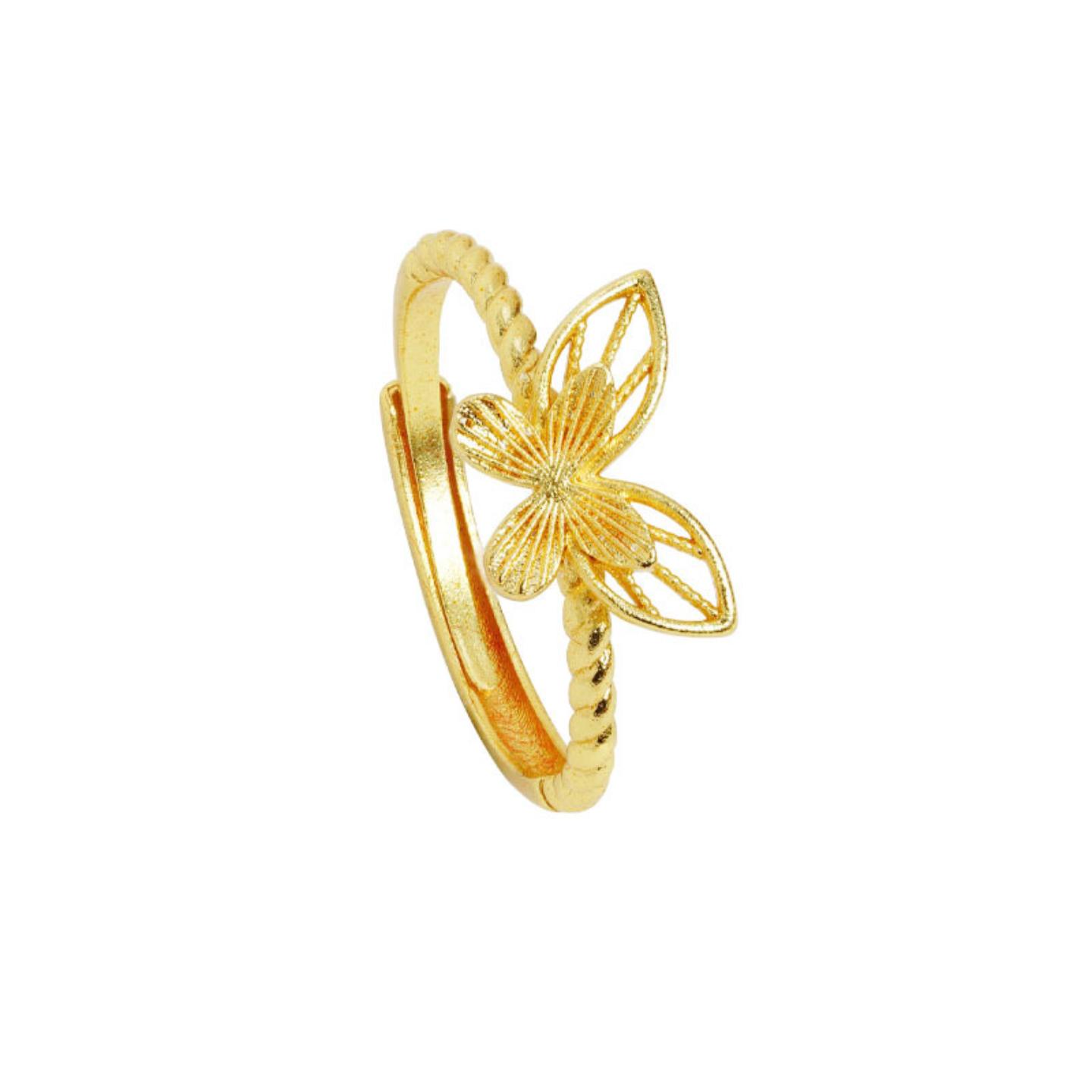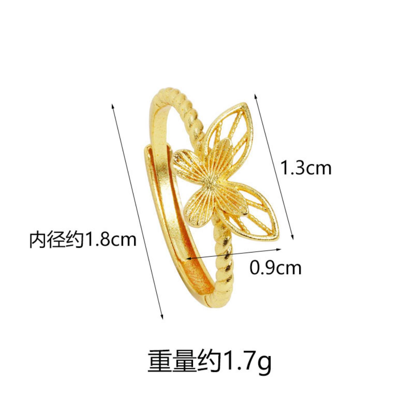 新品古法沙金戒指女复古潮流镂空花丝蝴蝶开口指环铜镀金饰品