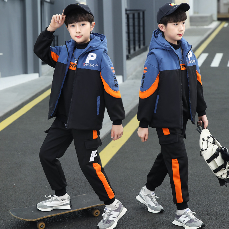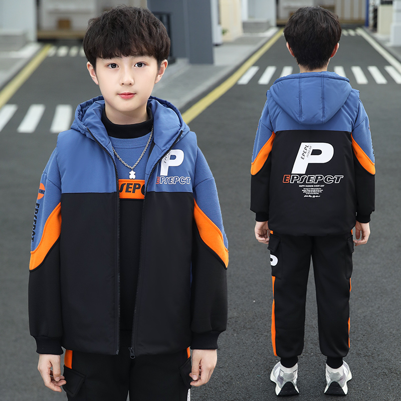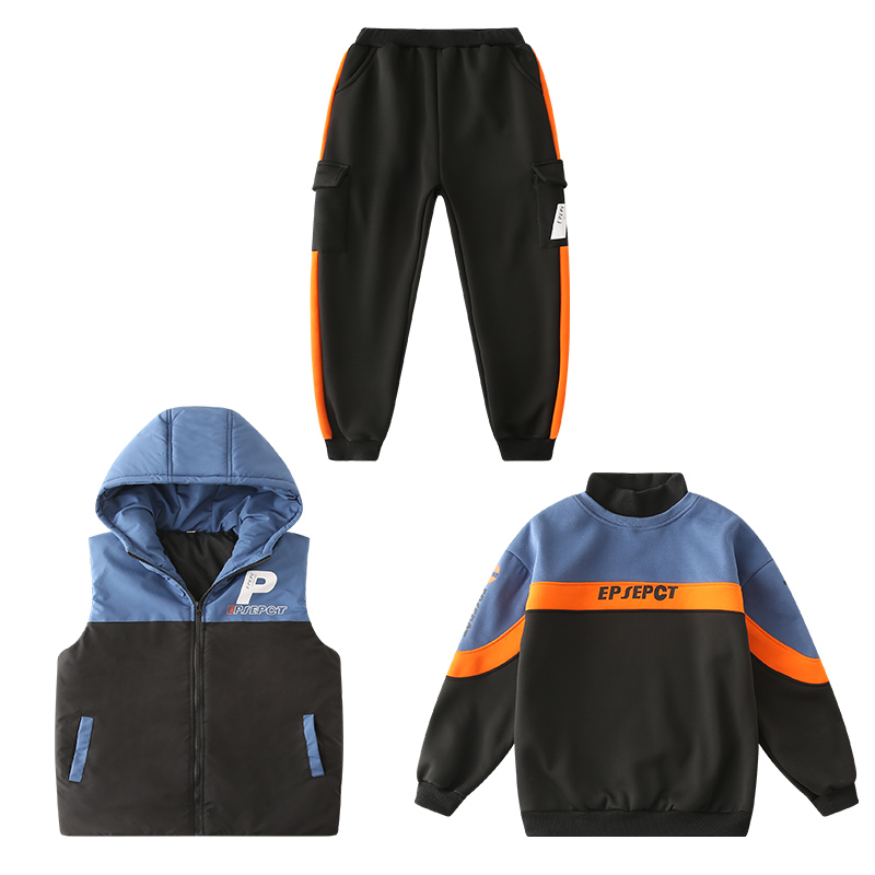 男童套装冬季加绒加厚卫衣三件套