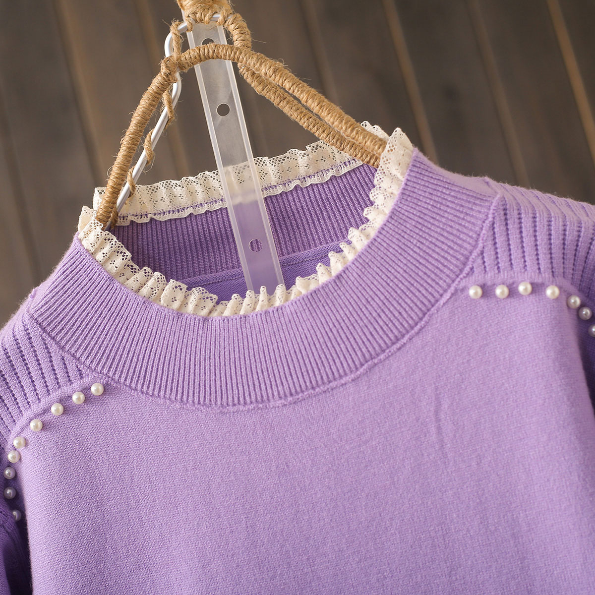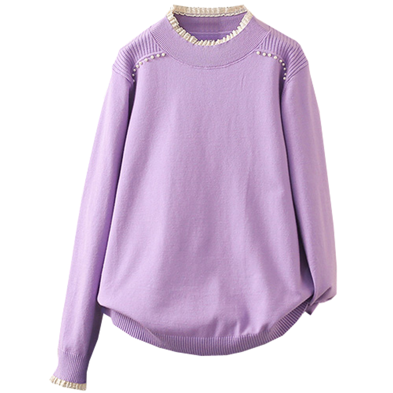秋冬大码200斤蕾丝花边半高领打底毛衣双肩钉珠保暖针织衫外穿潮