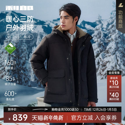【三防】利郎官方 羽绒服男士2025冬季休闲男装连帽厚款保暖外套