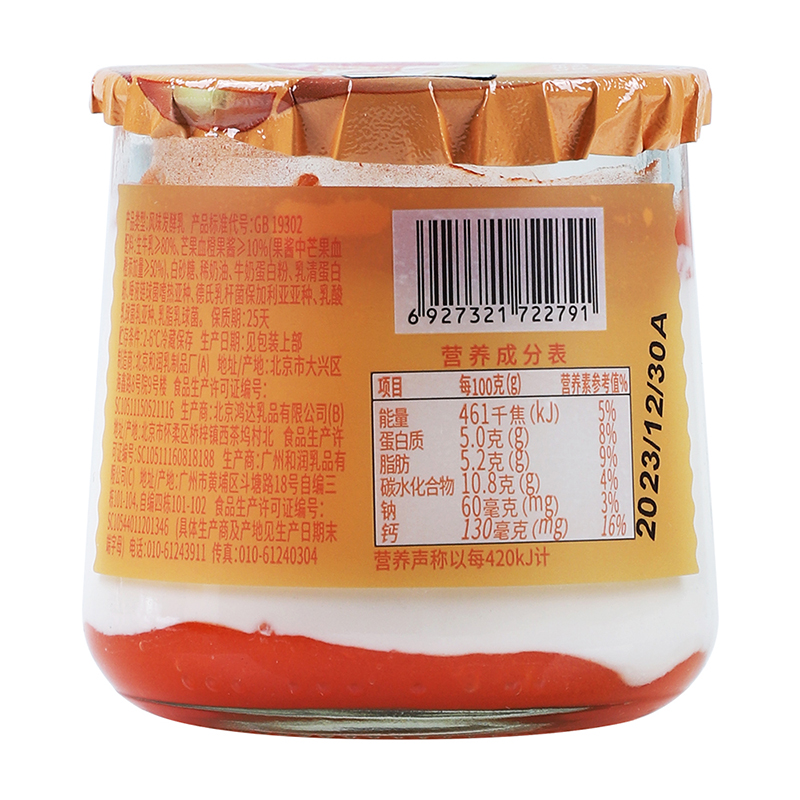 和润双层果酱酸奶 搅拌型风味发酵乳 芒果血橙覆盆子130g