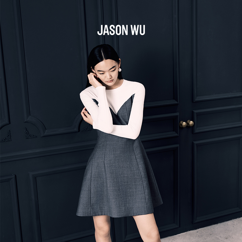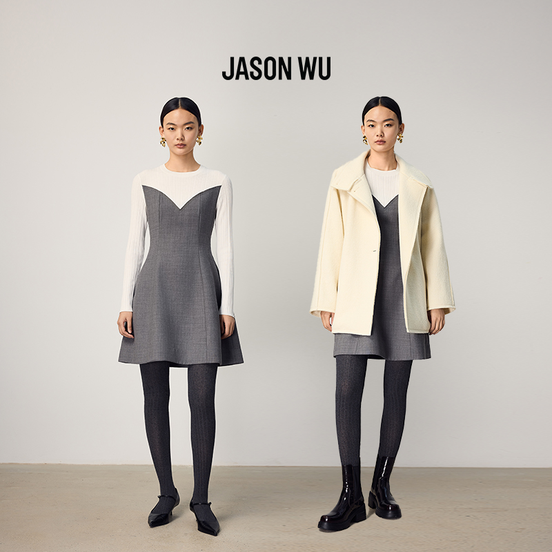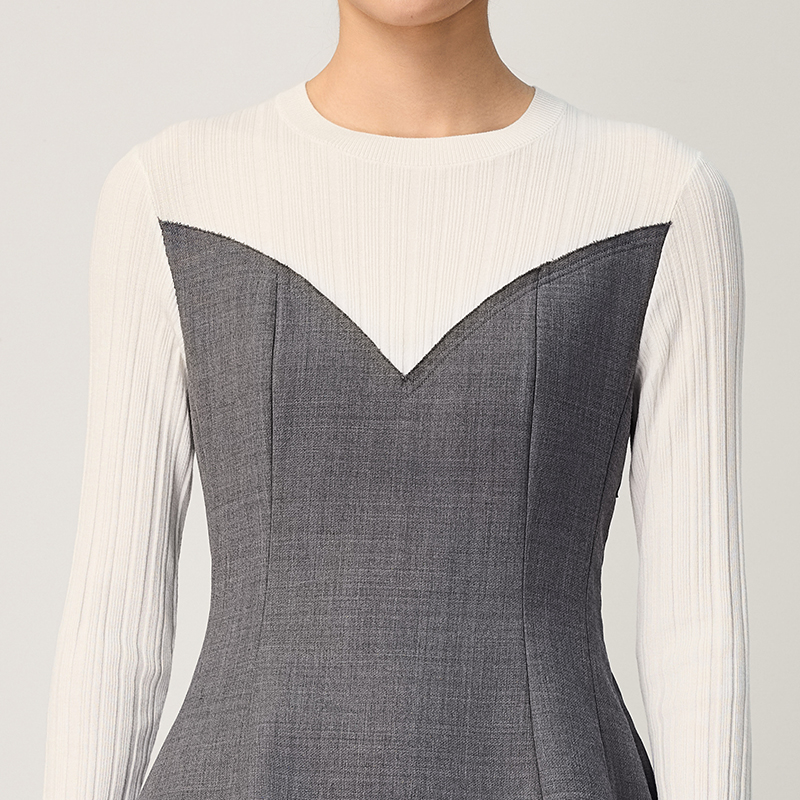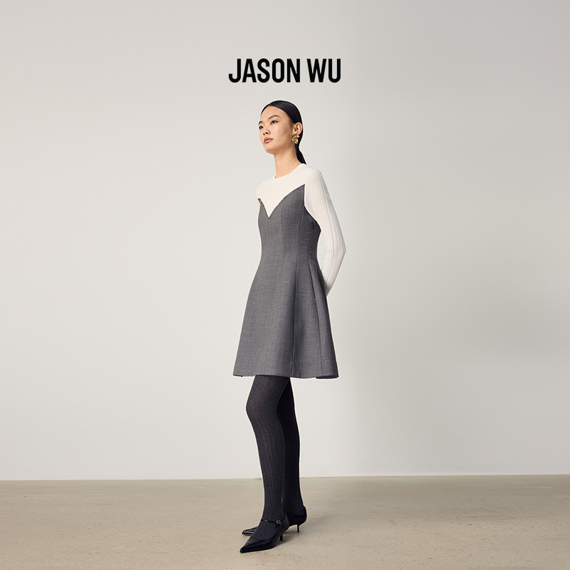 【莱赛尔】JASON WU25秋季新款格雷系通勤百搭针梭收腰拼接连衣裙