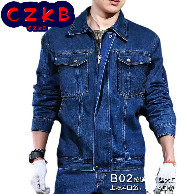 秋冬牛仔工作服套装男耐磨加厚防烫耐磨劳保服焊工工作服加厚电焊