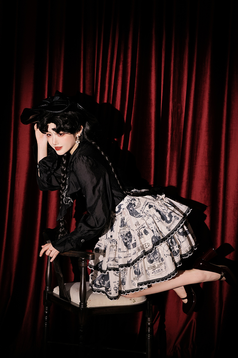 长袖纯色雪纺领巾衬衫三层蛋糕短裙秋套装魔女悬赏令W小姐的书架