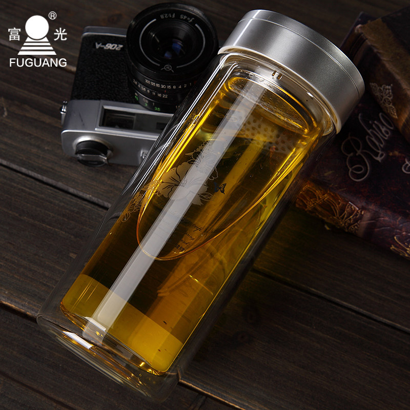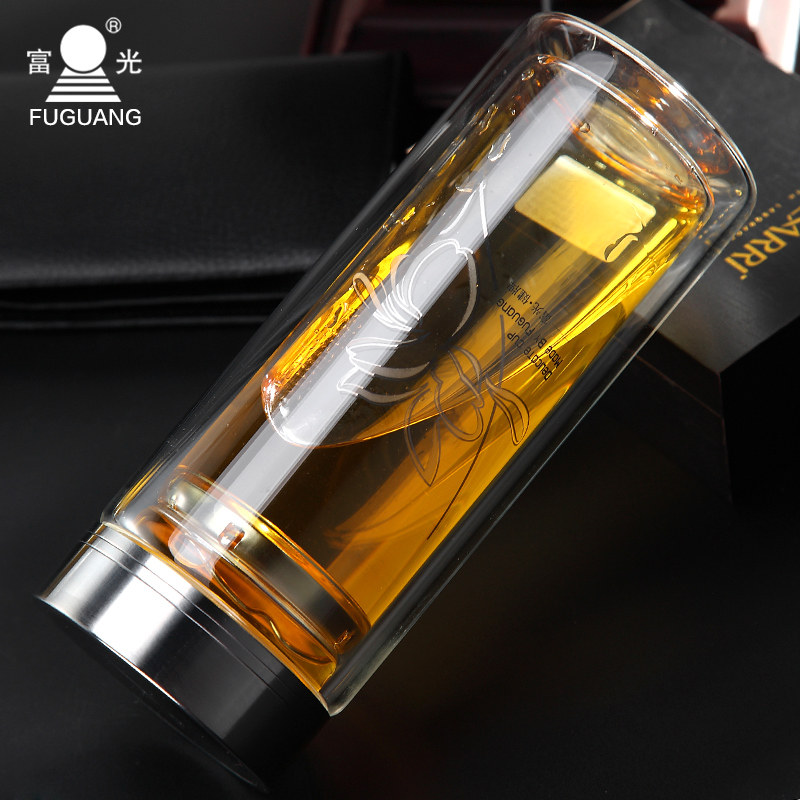 富光玻璃杯双层便携玻璃水杯大容量商务办公杯子耐热过滤茶杯定制