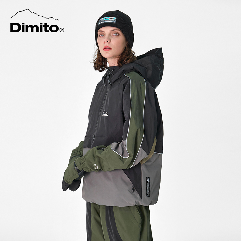 Dimito专业滑雪手套男女防风保暖户外骑行手套 22 EASY ZIP BLOCK