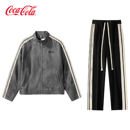 Coca-Cola可口可乐 美式复古机车皮衣宽松休闲运动套装 男女同款