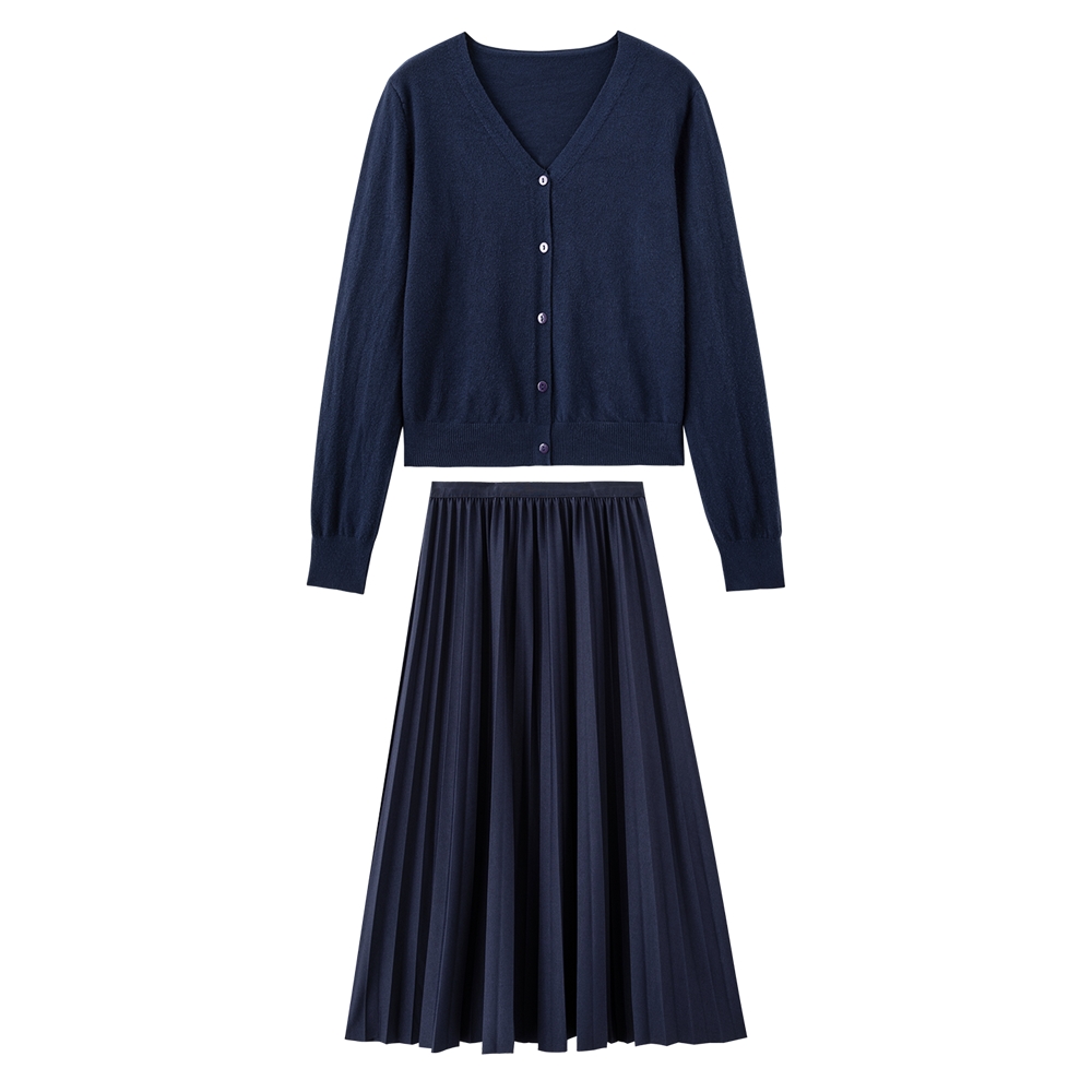 高级感韩版针织开衫上衣百褶半身裙两件套连衣裙子2025春秋装新款