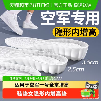 适用于空军一号全掌增高鞋垫女隐形内增高垫久站不累男增高不塌陷