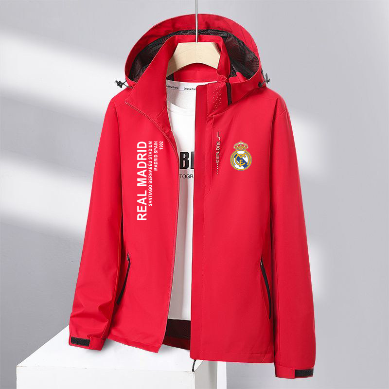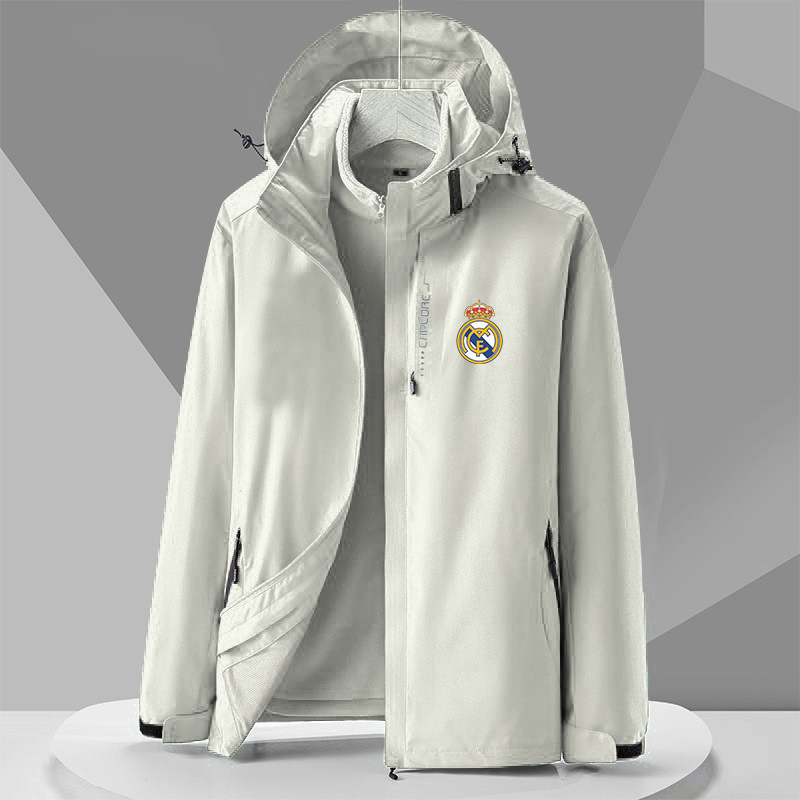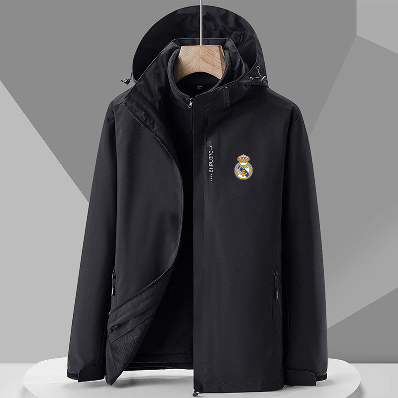 欧冠皇马足球运动外套风衣服男女情侣秋冬季薄款加绒三合一冲锋衣