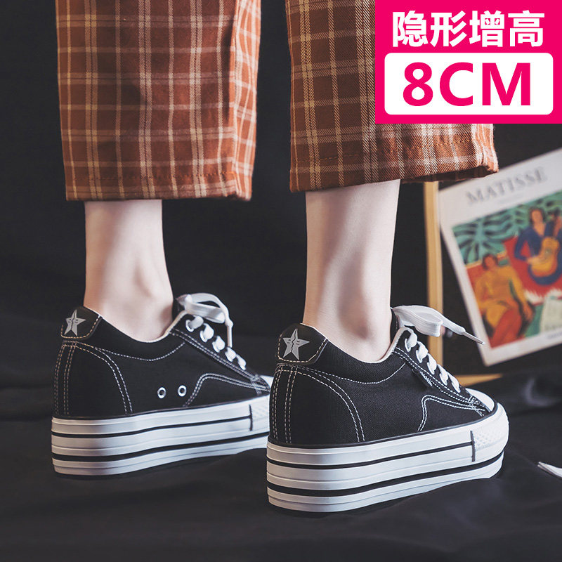内增高8厘米帆布鞋女2025春秋新款韩版百搭潮厚底松糕休闲板鞋子