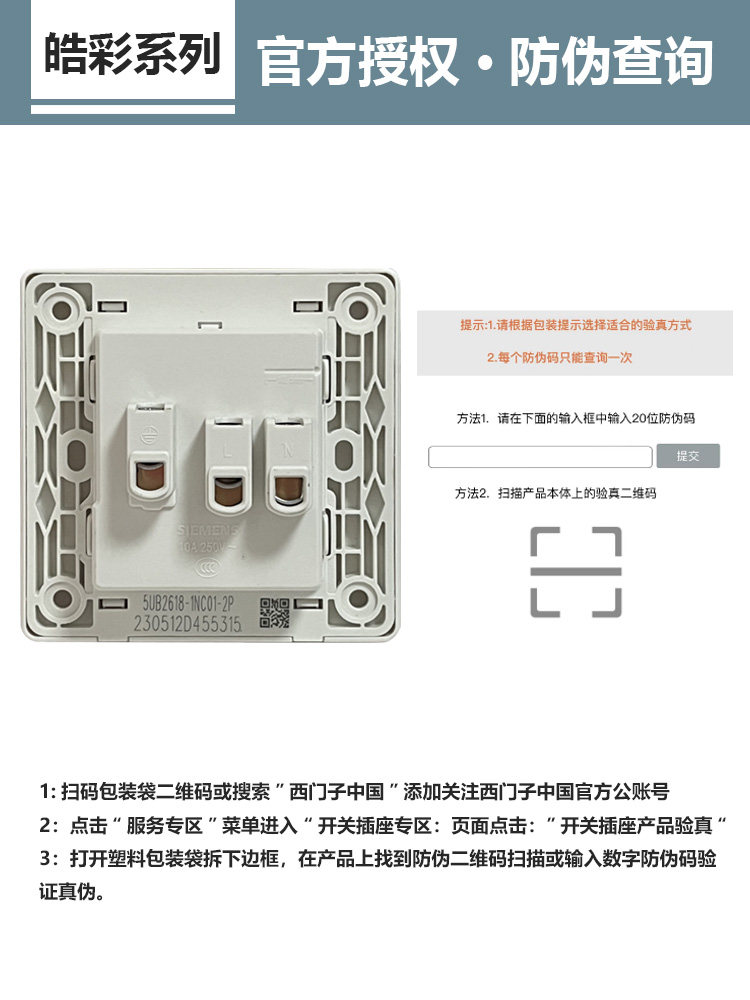 西门子远景白开关插座假一罚十