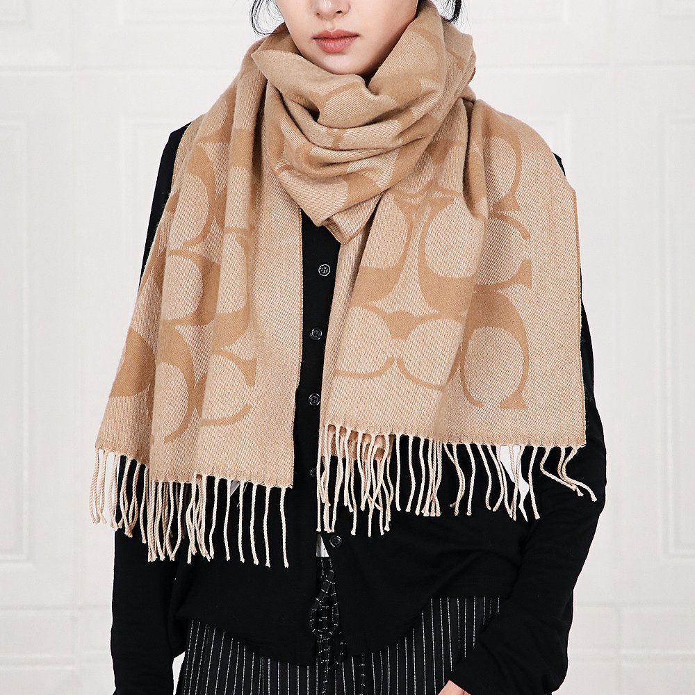 香港直邮Coach蔻驰羊绒毛围巾秋冬老花印花经典百搭奢侈羊毛保暖