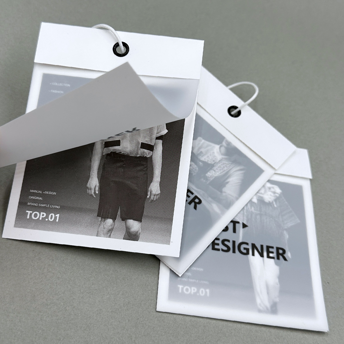 女装服装吊牌定做 白色简约男装标签个性订制 特色半透明挂牌订做
