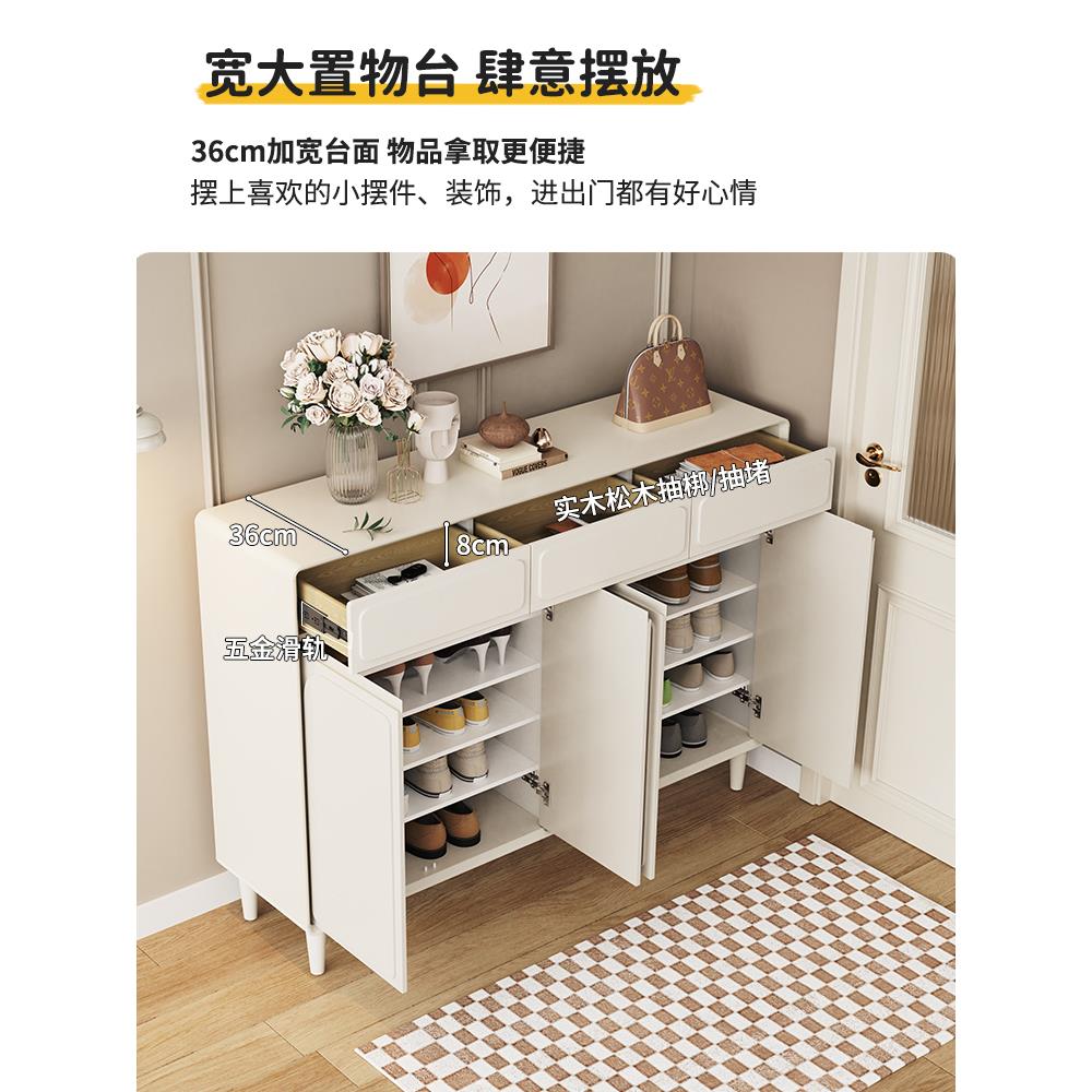 进门法式鞋柜玄关柜一体靠墙网红家用门口隔断储物柜奶油风装饰柜