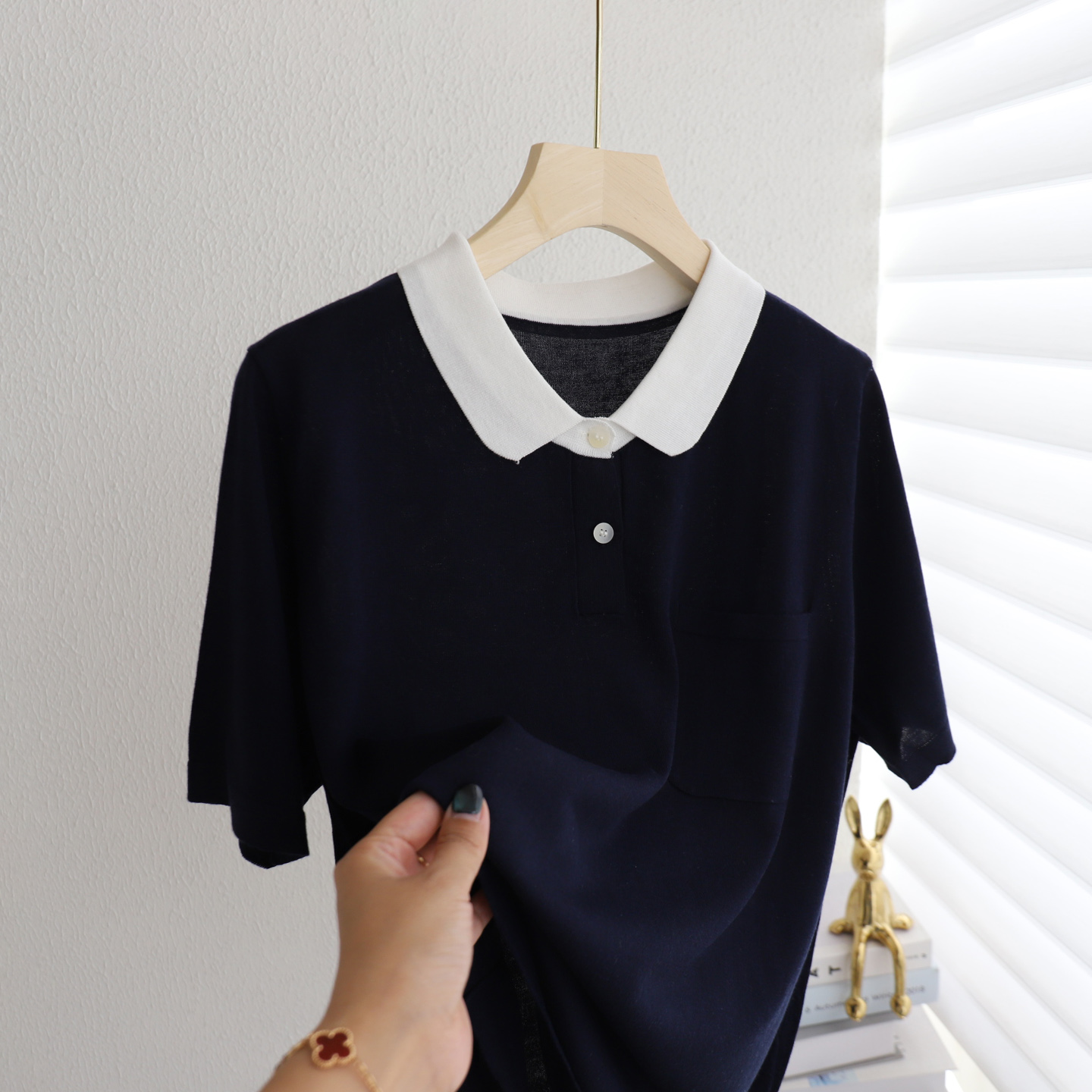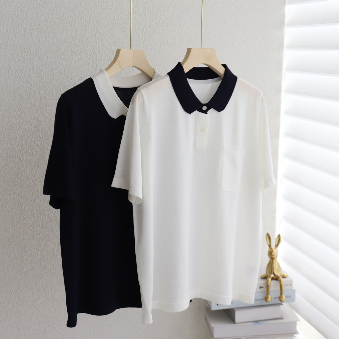 t恤女莱赛尔天丝翻领短袖针织衫夏季新款宽松高知白色polo衫上衣