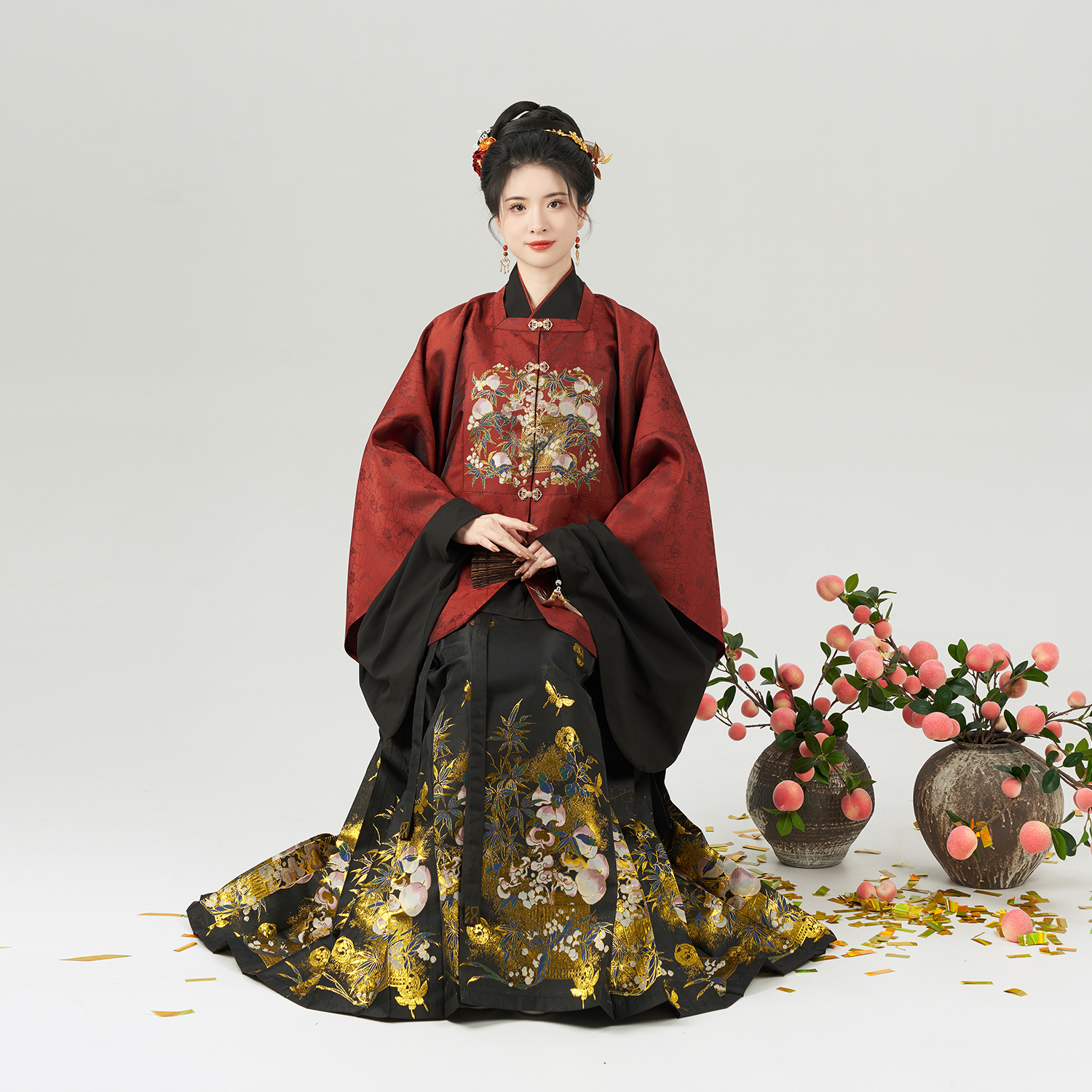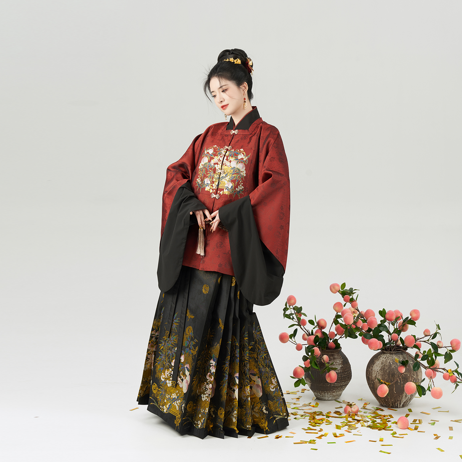玉桃灵竹织造司原创明制汉服方领半袖交领上衣仿妆花织金马面裙女