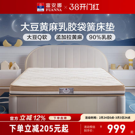 富安娜弹簧床垫学生成人护脊黄麻床垫椰棕乳胶床垫卧室家用厚床垫