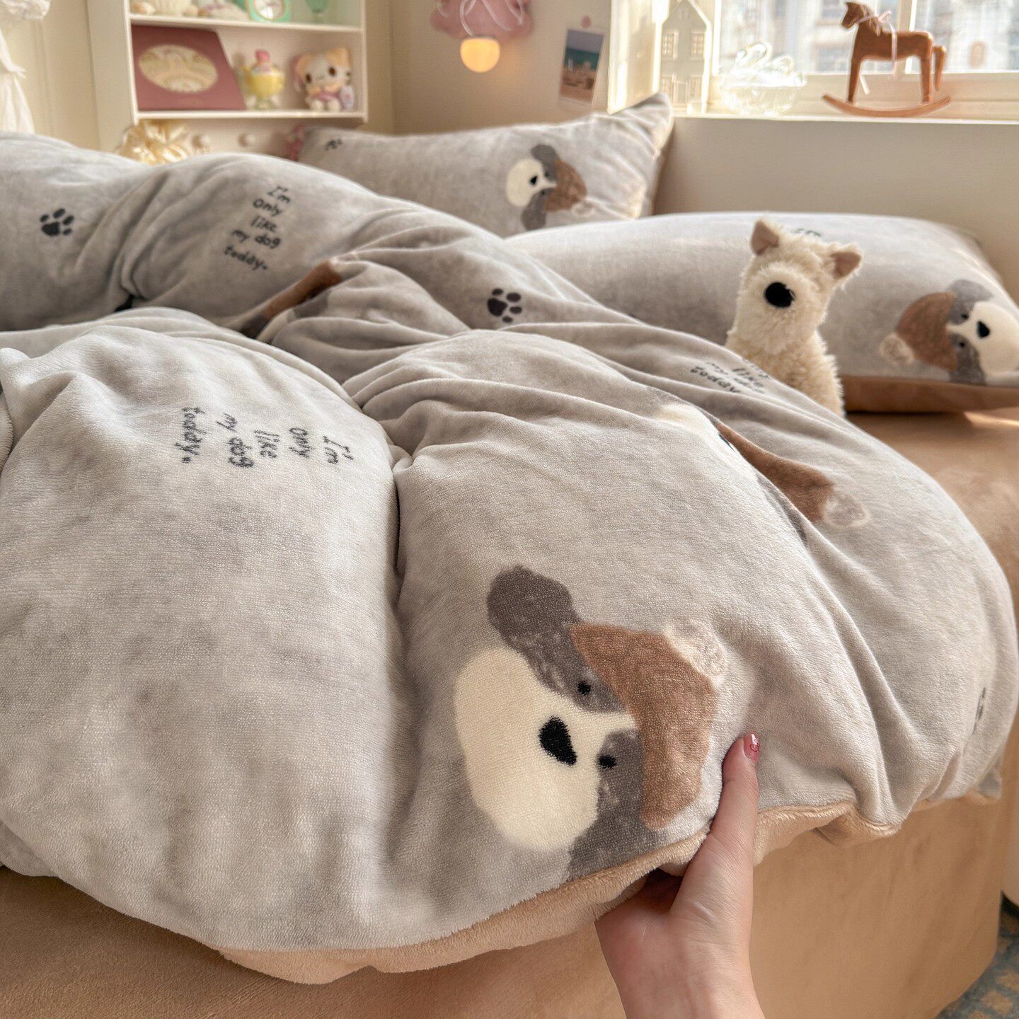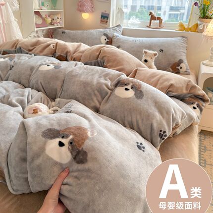 日本A类牛奶绒床上四件套珊瑚绒被套冬季加绒加厚床单三件套床笠