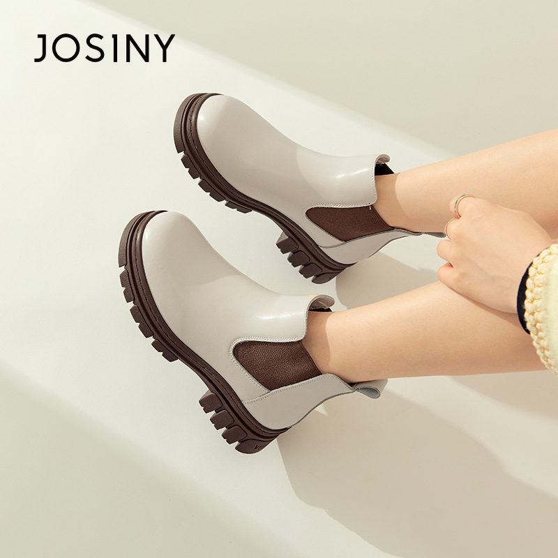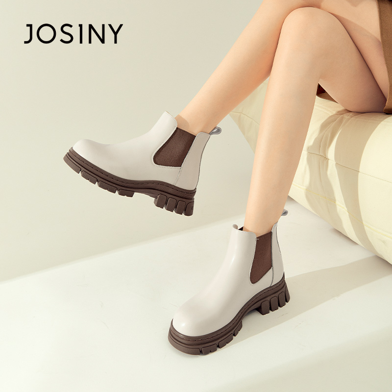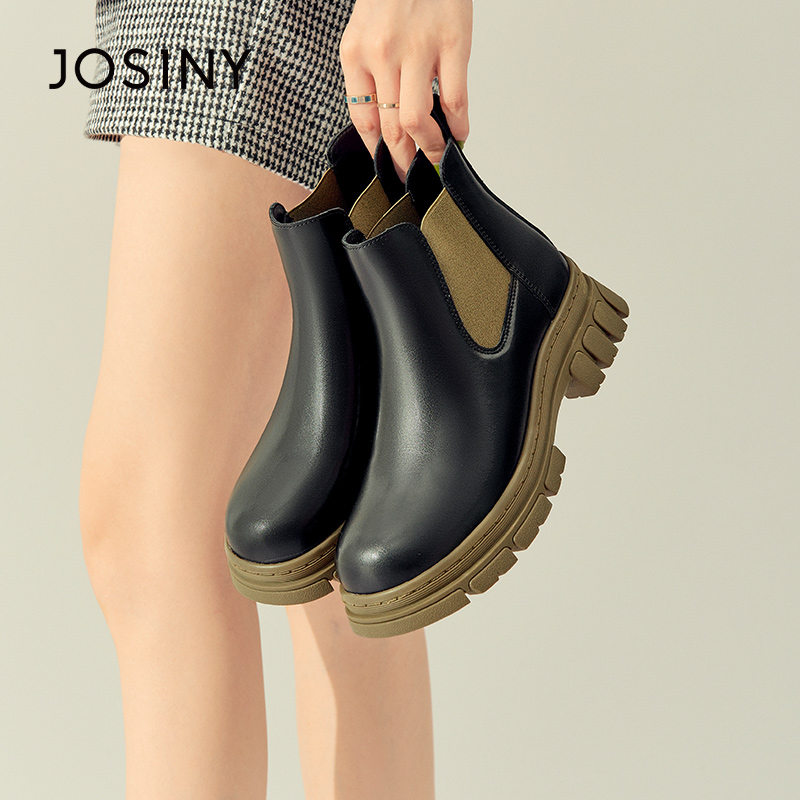 卓诗尼秋冬季女士短筒靴子圆头平跟套筒及踝时装休闲切尔西靴百搭