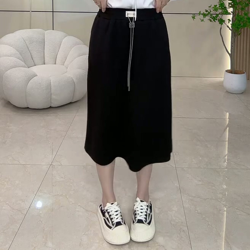 胖妹妹显瘦大码女装贴标半身裙2025秋季爆款系带松紧腰百搭小黑裙