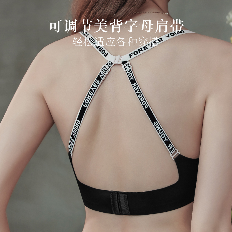 宝诗嫣美背内衣女春夏季小胸聚拢露背字母肩带文胸无钢圈法式胸罩