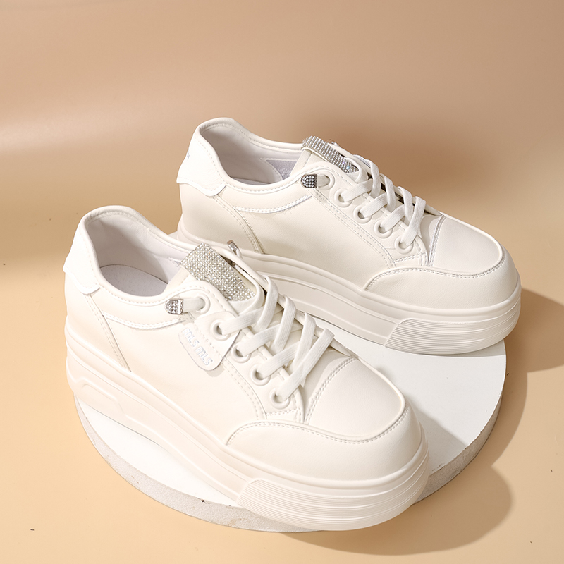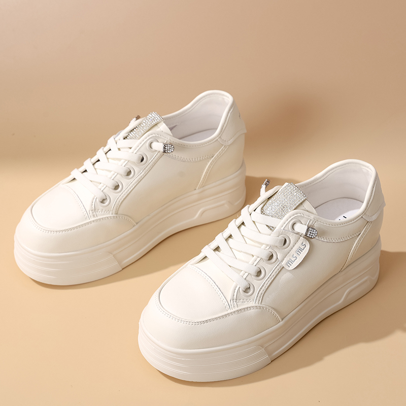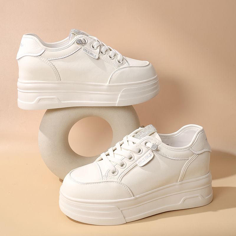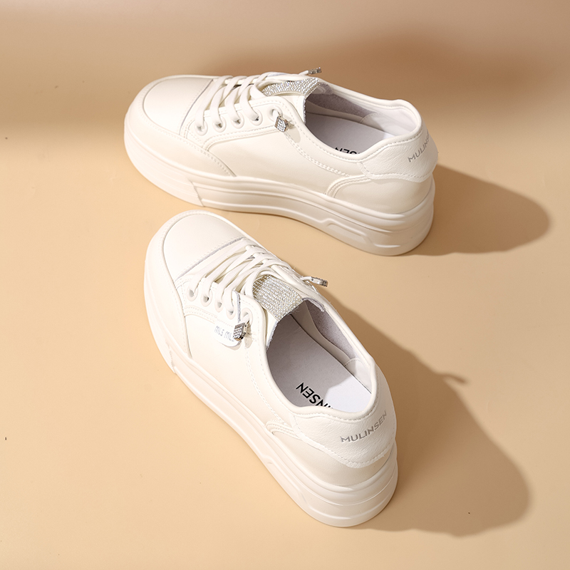 木林森女鞋2025秋季新款厚底休闲透气板鞋女士低帮牛皮韩版小白鞋