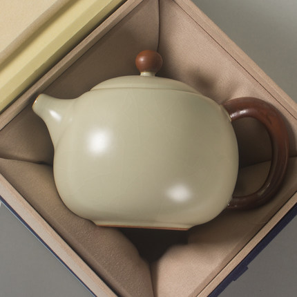 特惠清仓230ml豆黄汝窑西施壶家用陶瓷泡茶壶汝瓷茶具开片冲茶罐