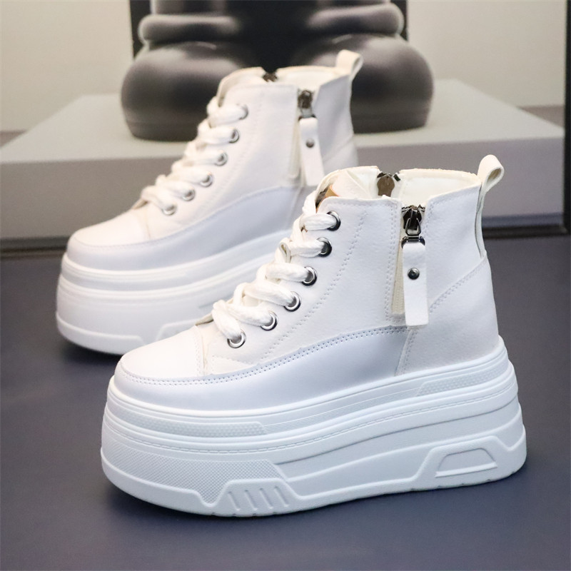 全黑内增高12cm女鞋秋新款高帮鞋双拉链显瘦小个子松糕厚底加绒鞋