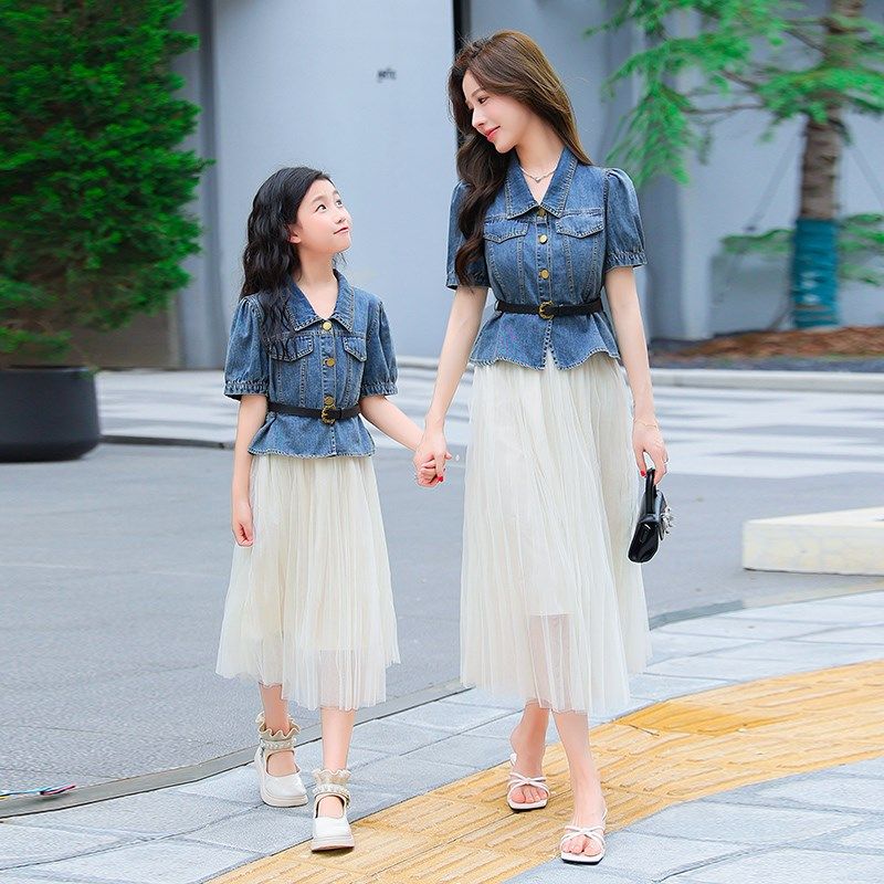不一样的亲子装夏季母女装薄款牛仔套装洋气高端炸街连衣裙两件套