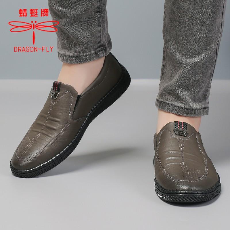 蜻蜓牌休闲皮鞋软皮软底懒人套脚男鞋一脚蹬鞋鞋乐福鞋软底皮鞋