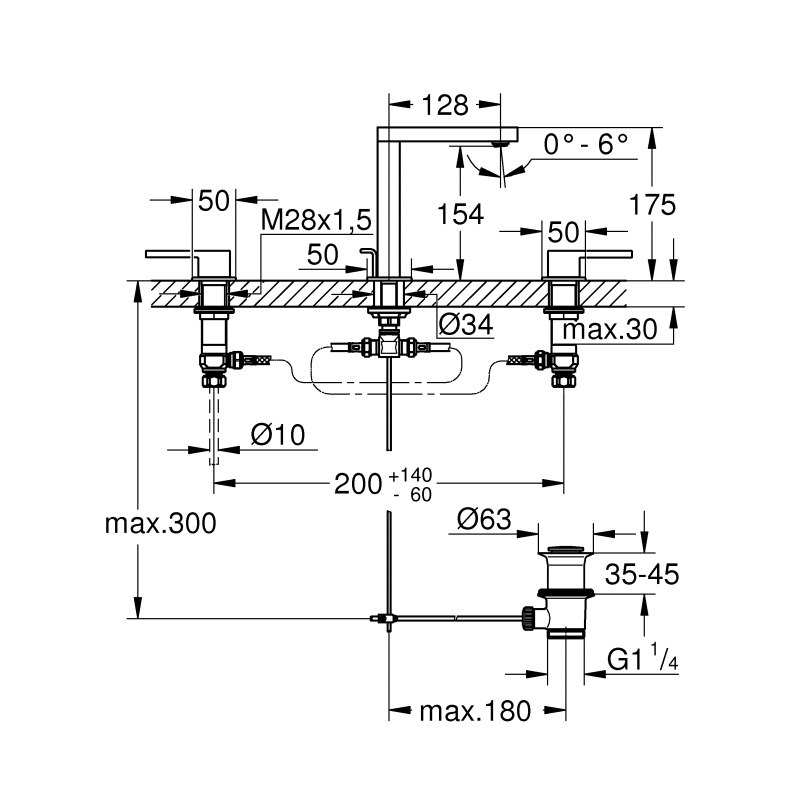 德国高仪20301000 20301003 台盆洗脸盆三孔冷热水龙头