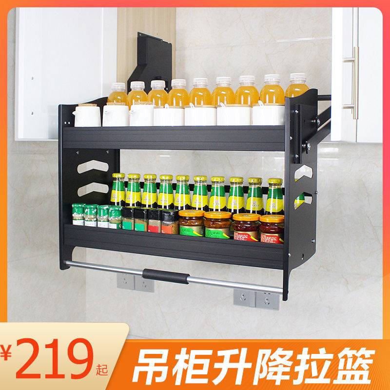 厨房吊柜下拉折叠置物架不锈钢橱柜升降机上下拉篮厨房吊柜下拉式