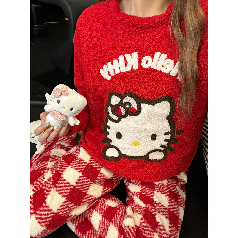 春秋季纯棉睡衣男女长袖长裤套装撞色包边宽松舒适家居服透气亲肤