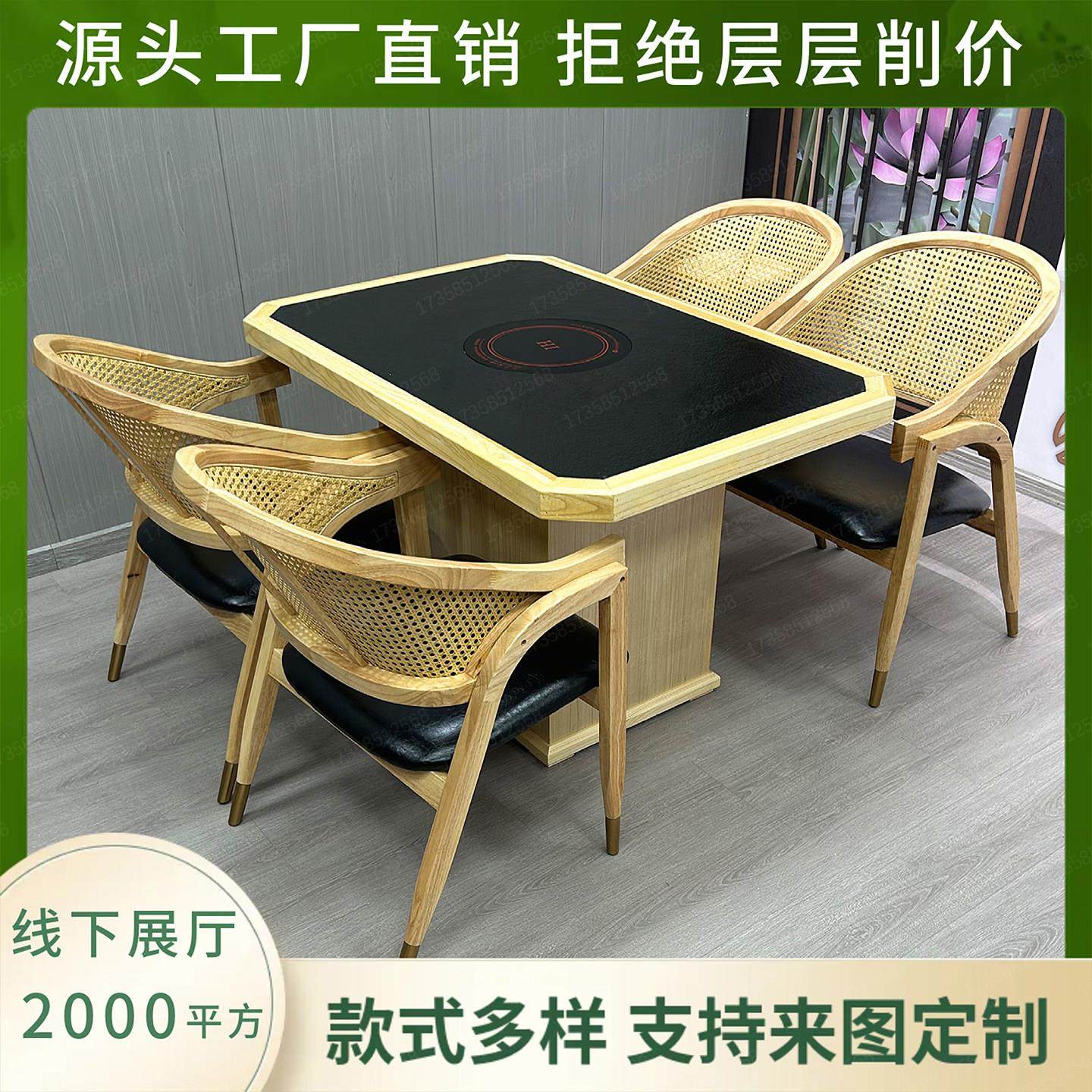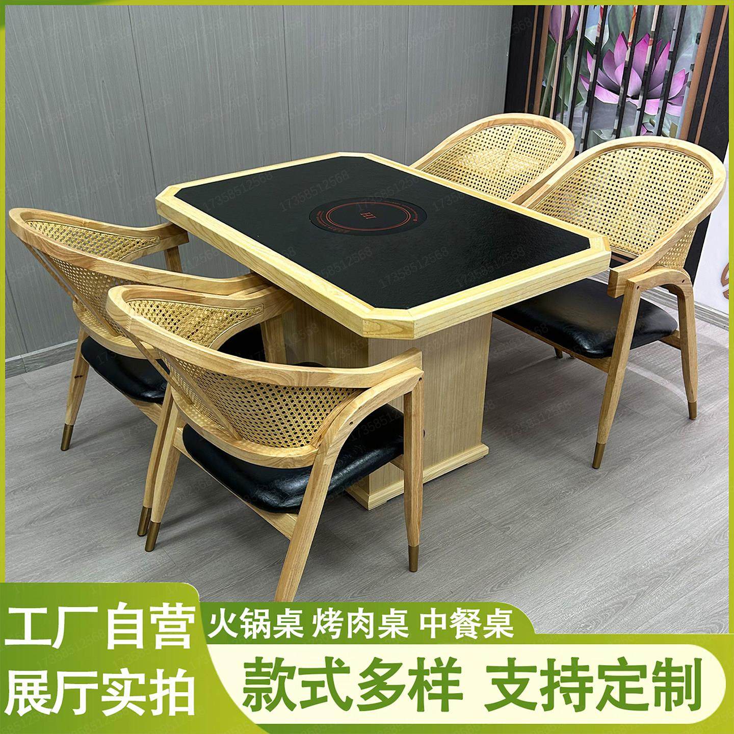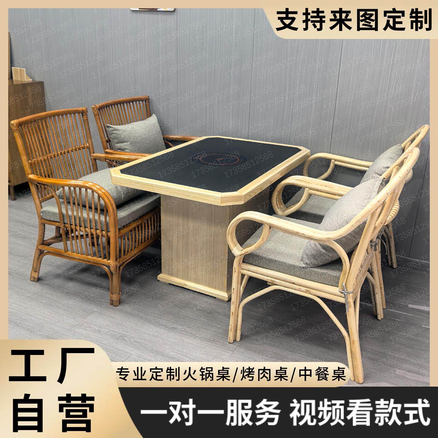 山野风火锅桌烤肉桌三出山火烧石无烟净化涮烧烤桌子桌椅商用定制