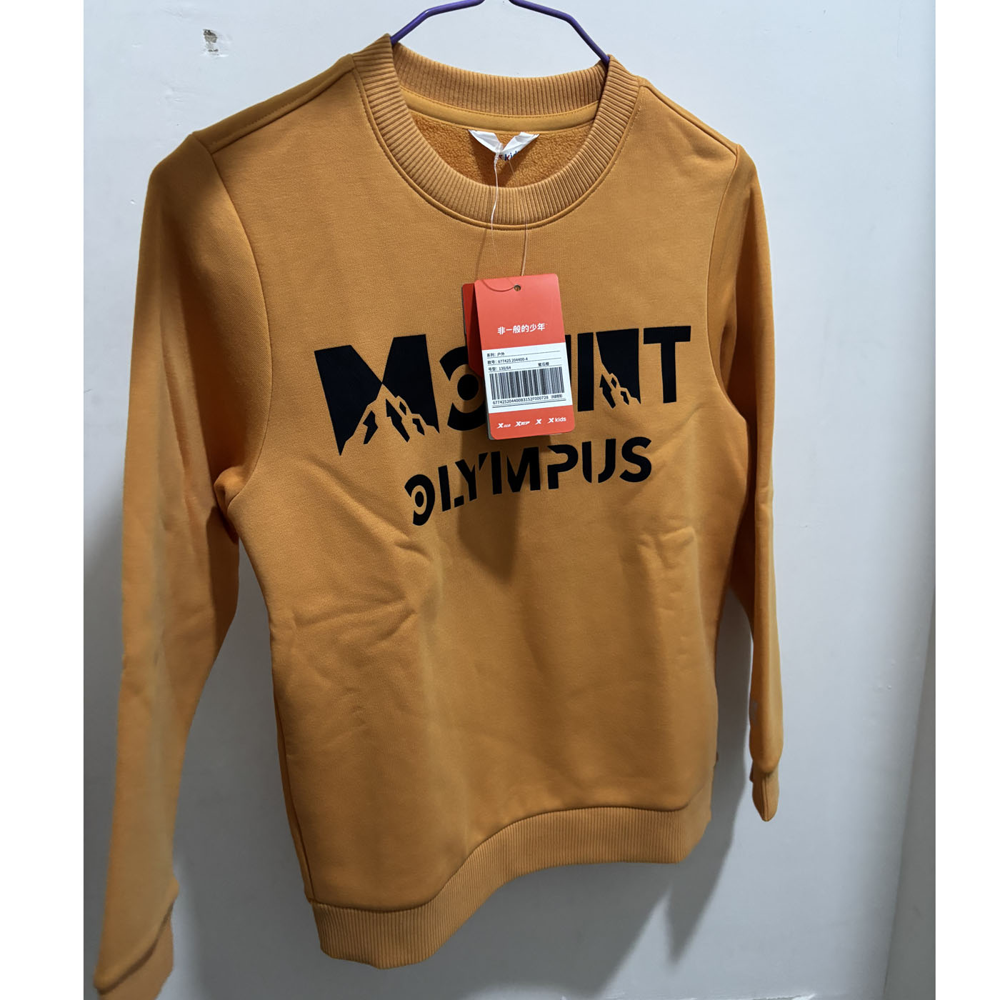 特步儿童正品冬休闲加绒保暧圆领套头青少年男童卫衣677425204400