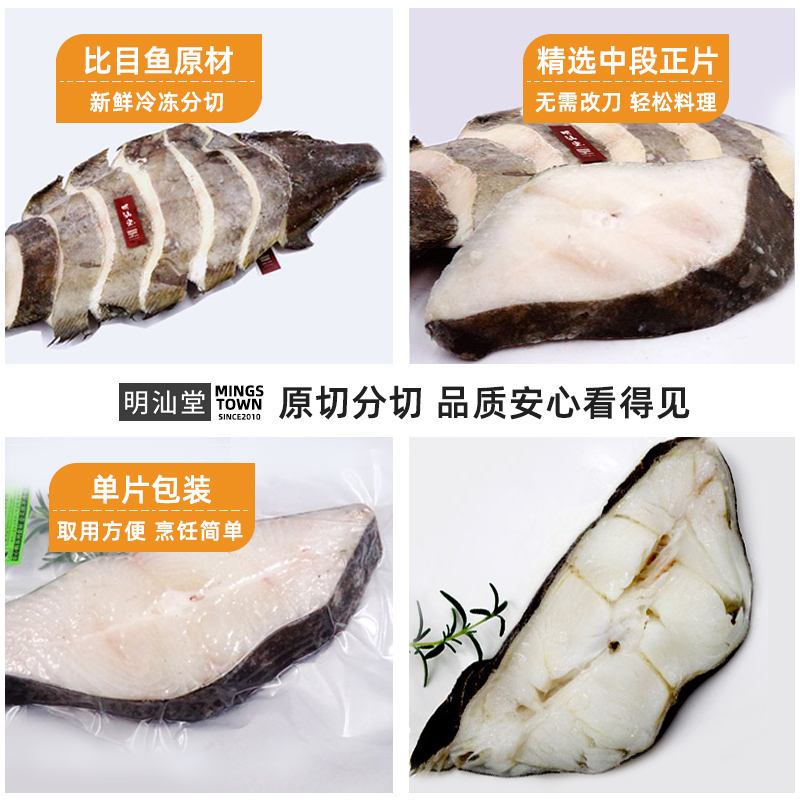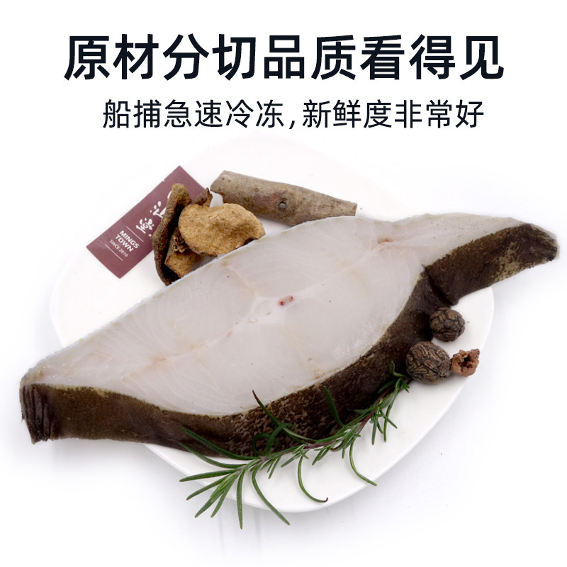 格陵兰新鲜鱼排鲽鱼片冷冻深海鸦片鱼身蝶鱼比目鱼段鱼块碟鱼中段