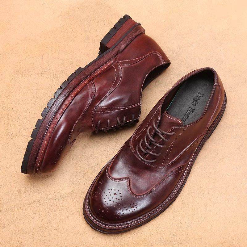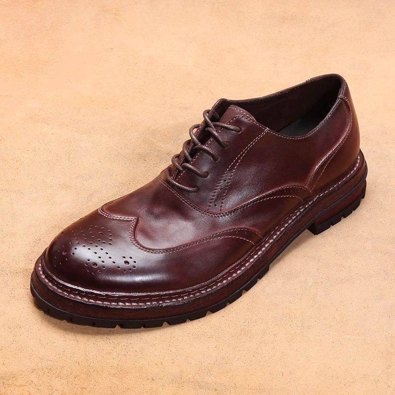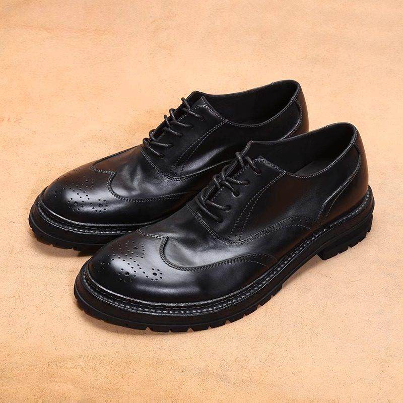 意大利潮鞋固特异马皮商务正装皮鞋布洛克雕花男鞋覆古休闲德比鞋